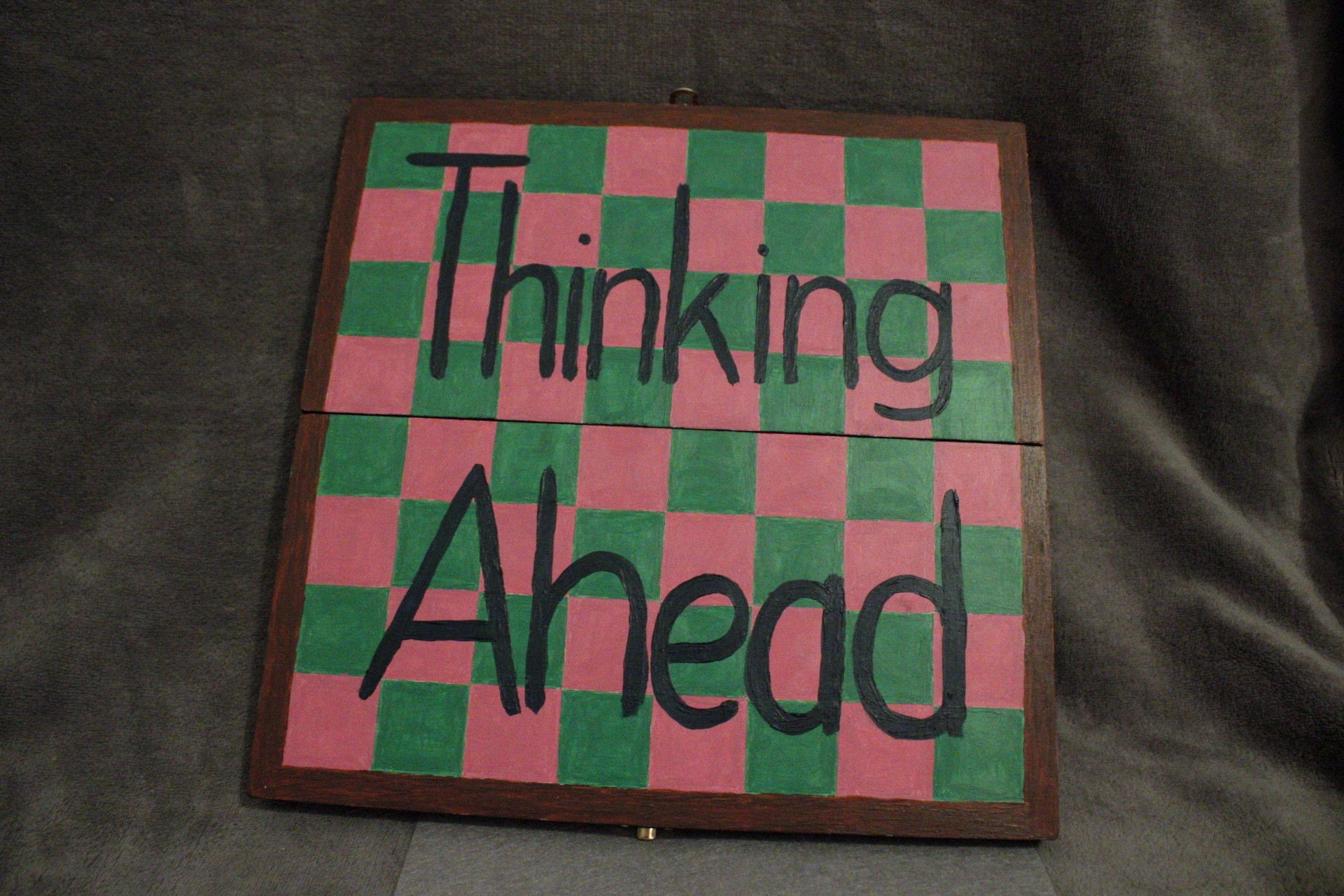 Das Feld ist farblich an die Figuren angepasst. Neben den Grundfarben erstreckt sich noch ein Schriftzug mit dem Motto „Thinking Ahead“ in der Farbe Deep Sea.