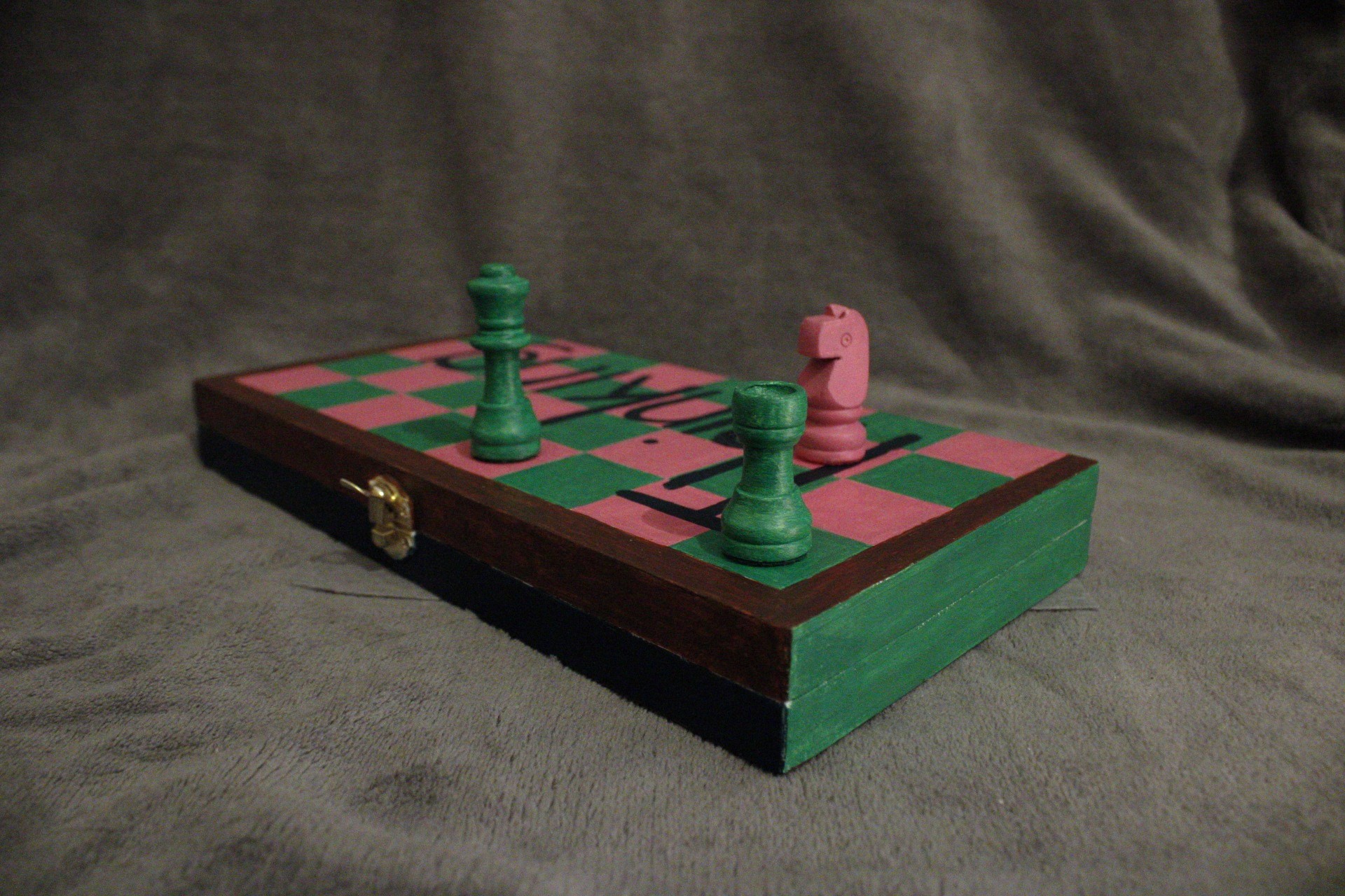 Als Reiseschach ist das Spiel eine schließbare Box, dessen Ränder mit allen vier Farben beschmückt sind. Die Umrandung des Feldes ist Spice Brown.