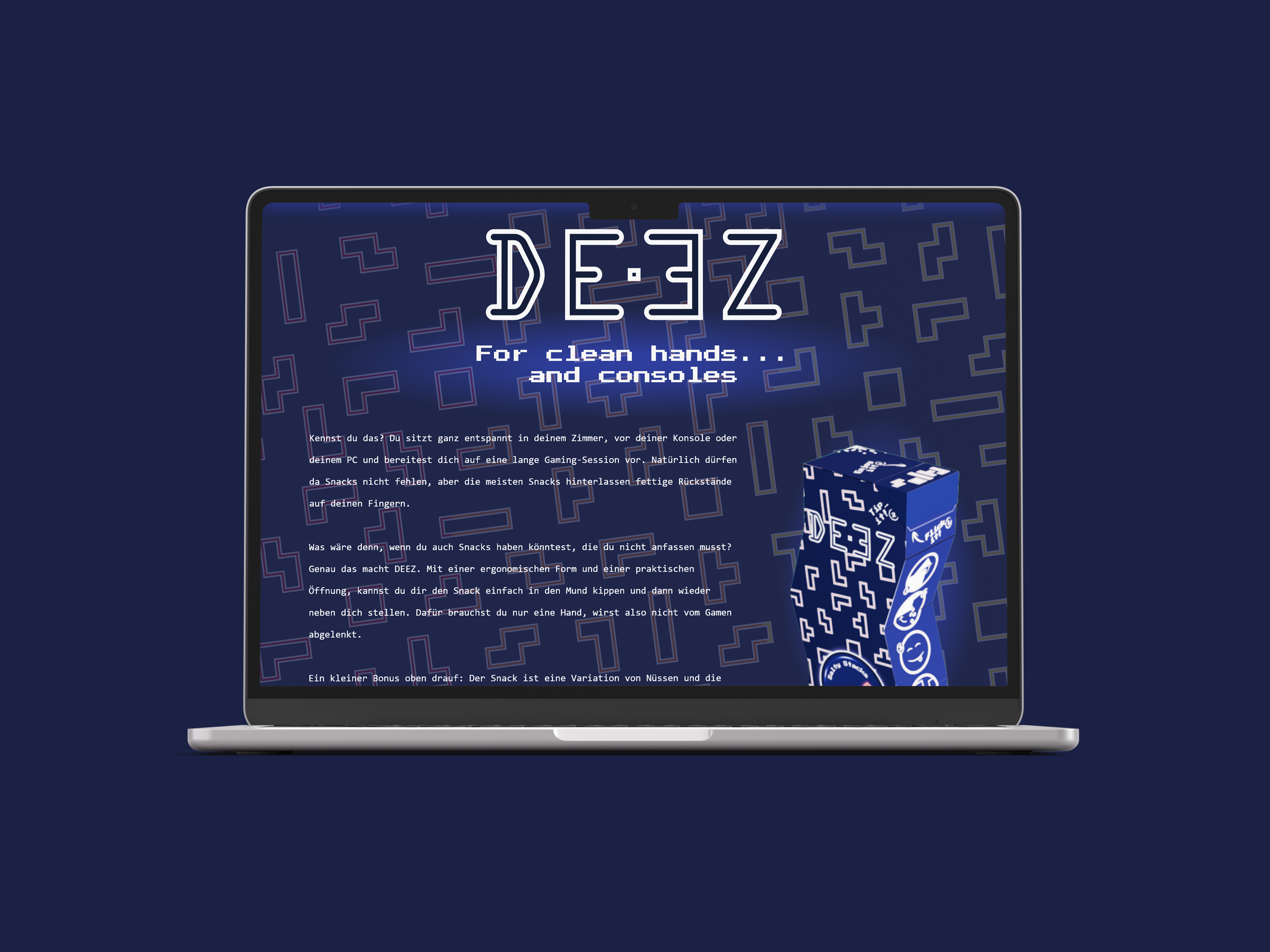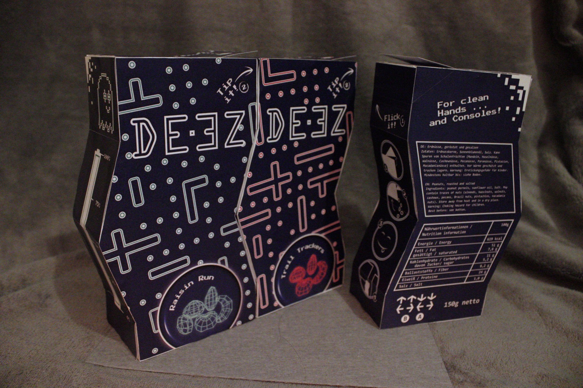 DEEZ ist eine neue, fiktive Nussmarke von Bahlsen. Mit Gamern wird eine weitgehend neue Zielgruppe erschlossen. Die Packung aus Karton ist ebenfalls eine Neuheit und auf dem Markt noch nicht vertreten.