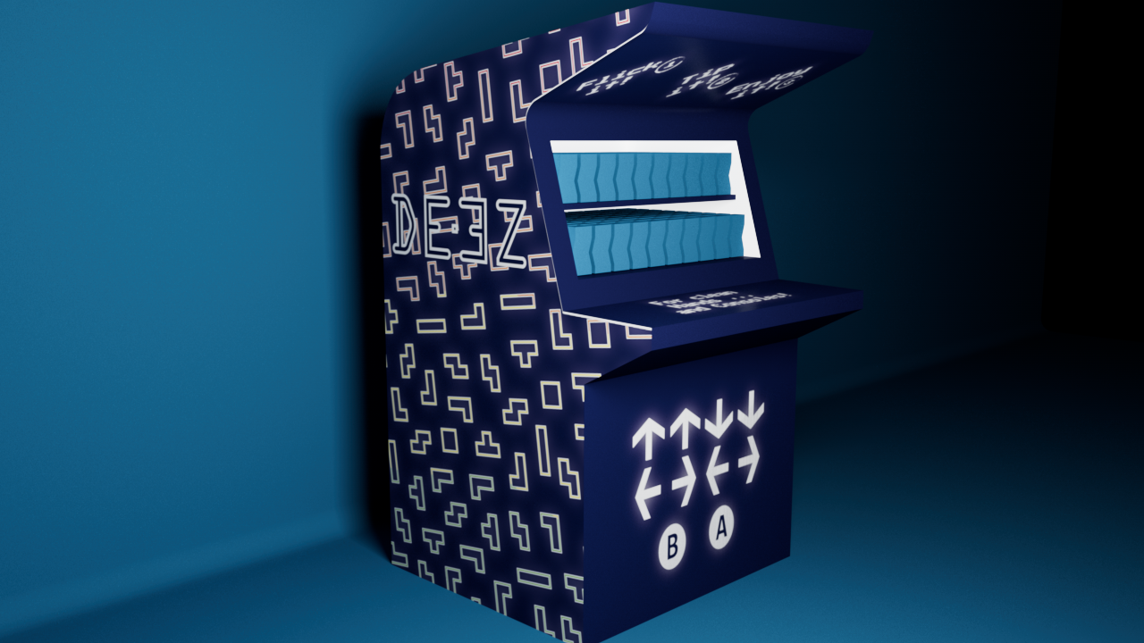Der Point of Sale für DEEZ ist einem Arcade-Automaten nachempfunden. In seinem Bildschirm befinden sich die Packungen. Das Design orientiert sich am Packungsdesign.