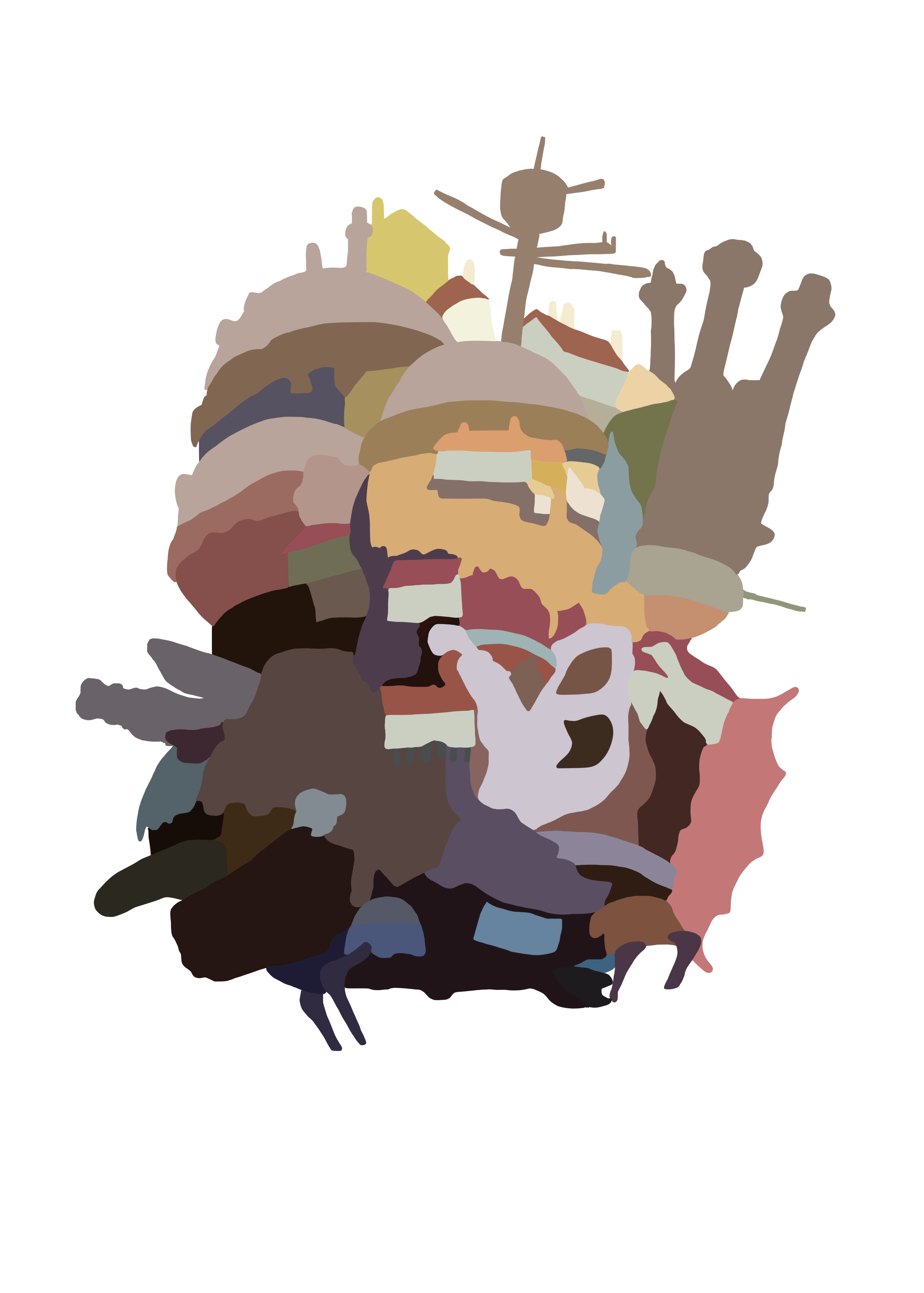 Das Schloss besteht äußerlich aus verschiedenen Schrott-Teilen, die durch Calcifers Kraft zusammengehalten und bewegt werden. Innerlich ist es ein ganz normales Haus.