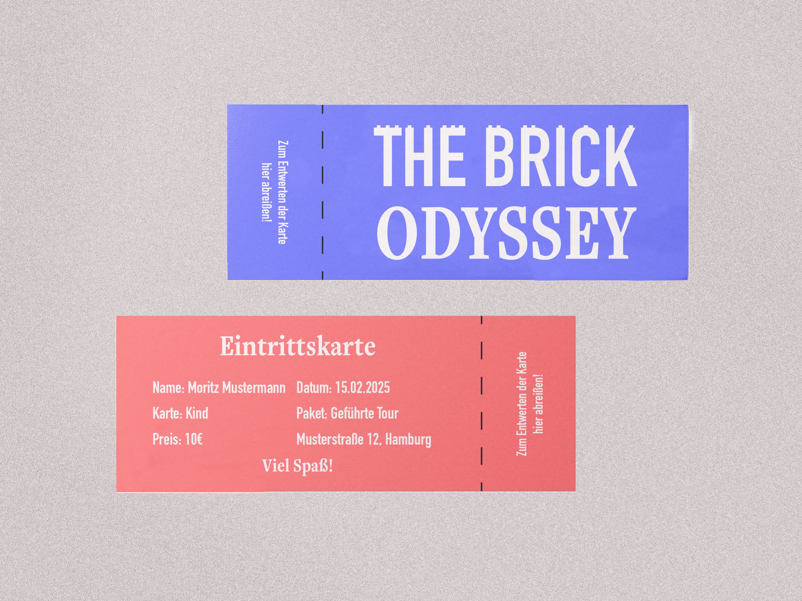 Auf der Eintrittskarte stehen Informationen zum Besitzer der Karte und zur Tour. Erwachsene erhalten blaue Karten und Kinder erhalten rote Karten.