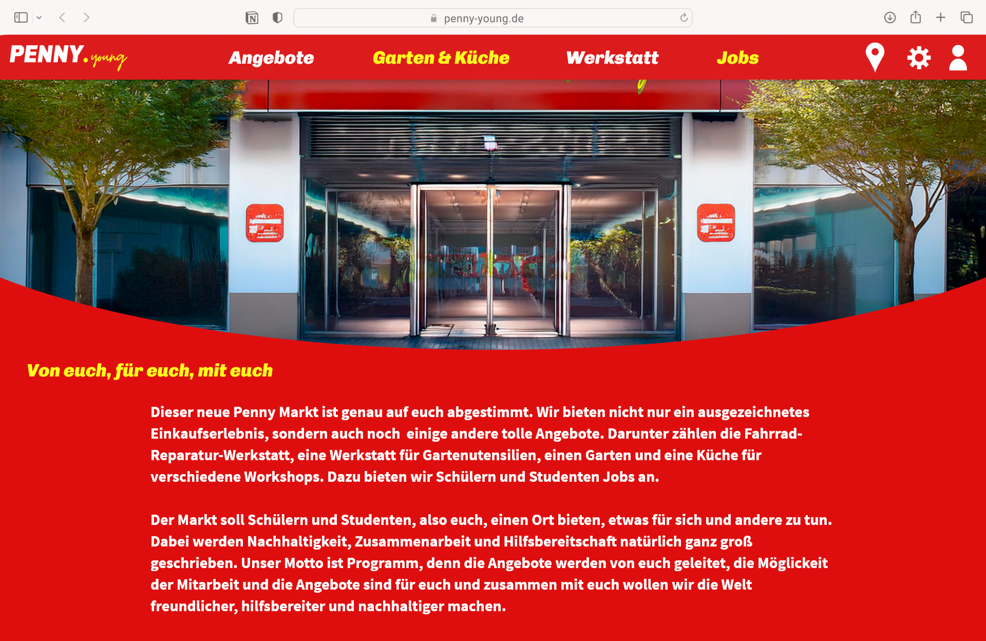 Dies ist ein fiktives Projekt für Penny, bei dem Schüler und Studenten als Zielgruppe im Mittelpunkt stehen. In meinem Plan für einen neuen Store habe ich deshalb mehrere Besonderheiten eingebaut. Ausgelegt ist der Store auf Nachhaltigkeit und Gemeinschaft. Beides sind Aspekte, die der Zielgruppe wichtig sind.